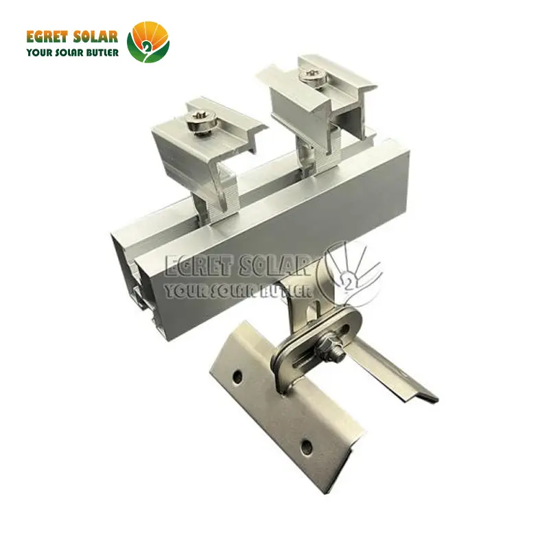 EGRET Ρυθμιζόμενη ηλιακή τραπεζοειδή μεταλλική δομή στέγης παρέχουν μια αξιόπιστη λύση για τις ηλιακές συστοιχίες σε αυτές τις συγκεκριμένες τραπεζοειδείς οροφές. Η προσαρμογή και η σχεδίαση προσφέρουν ευελιξία και αποτελεσματικότητα των εγκαταστάσεων.