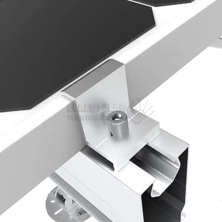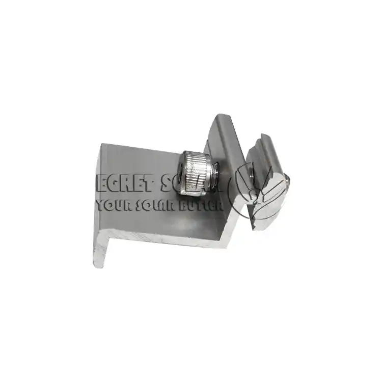 Το Mid Clamp είναι εγκατεστημένο στη μέση της συστοιχίας και συσφίγγει τα εσωτερικά πλαίσια δύο γειτονικών εξαρτημάτων ταυτόχρονα, φέροντας τη δύναμη που μεταδίδεται από τα δύο γειτονικά εξαρτήματα. Αντιστέκεται κυρίως στην ανοδική δύναμη ανύψωσης του ανέμου. Και τα δύο άκρα του μεσαίου σφιγκτήρα είναι ανοιχτά και χρησιμοποιούνται για τη συγκράτηση του πίνακα.